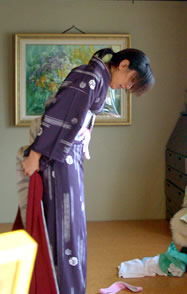 着付け教室での成果華々しく、この日は 朝 お子さんを自転車で保育園に連れていらした後のジーンズ姿でのお越しから、ほんの少しの時間で、きちんと お気に入りとおっしゃるシルクの着物に さっとお着替え下さっての個人セミナーでした。