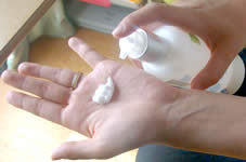 これも 3の化粧水と同じく 全体になじませた後、リンパの流れを促すためのマッサージを行ないながら 肌に すっかり吸収させてしまいます。